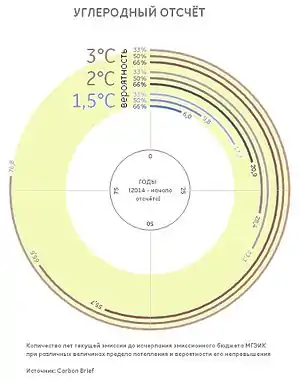 - На основе данных МГЭИК (см. p. 64 Table 2.2 IPCC's 5th AR Synthesis Report). Эмиссия за 2010—2014 годы взята согласно оценке Global Carbon Project, данные о текущей эмиссии из Friedlingstein et al 2014.