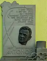 - У Києві на будинку по вулиці Огарьова, 1, в якому жив О.К. Антонов, встановлена меморіальна дошка[4].