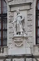 - Чотири скульптурні статуї на фасаді Віденської ратуші