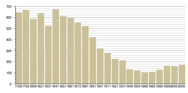 Динаміка населення (Baratier, Duby & Hildesheimer pour l’Ancien Régime ; INSEE[3], EHESS[4] pour les chiffres issus des recensements légaux ):