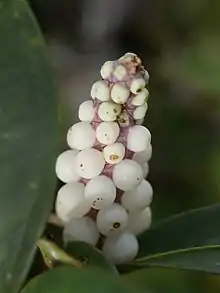 Плоди — соковиті, м'ясисті ягоди, що містять від одного до безлічі насіння. Колір ягід від яскраво-червоного до чорного, ягоди можуть бути також двобарвними або смугастими. Насіння плоско-опукле, з м'ясистим ендоспермом. Ягоди розносяться зазвичай тваринами, переважно птахами. У міру дозрівання ягода як би видавлюється з оцвітини і повисає на двох ниткоподібних смужках, закріплених на частинах оцвітини.