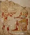 Анубіс (праворуч) на барельєфі в храмі Рамзеса II, Абідос