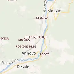 Анхово (словен. Anhovo) — мале поселення на правому березі річки Соча в общині Канал, Регіон Горишка, Словенія. Висота над рівнем моря: 143.5 м.