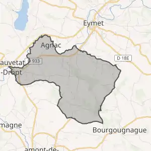 Муніципалітет розташований на відстані[2] близько 500 км на південь від Парижа, 80 км на схід від Бордо, 55 км на північ від Ажена.