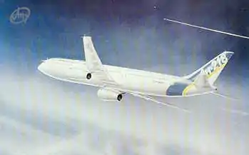 Роботи над проєктом було розпочато в 1991 році. Перші варіанти передбачали створення літака подібного за дизайном до Ту-154. Втім дана схема була визнана неперспективною і від неї відмовилися. В результаті літак отримав двомоторний дизайн, він був покликаний перевозити близько 350 пасажирів з високоекономічними показниками, але в результаті так і не був запущений у виробництво через розпад СРСР.