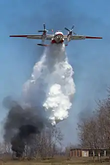 ![]() Ан-32П скидає пожежогасну рідину. | |