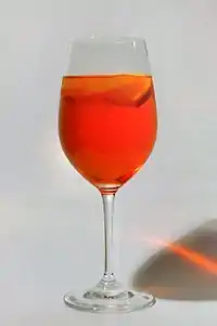 Апероль - італійський аперитив, легкий алкогольний напій, з міцністю 11°, помаранчевого кольору і з кисло-солодким смаком. Має ноти помаранчу, трав: тирличу, ревеня тощо.