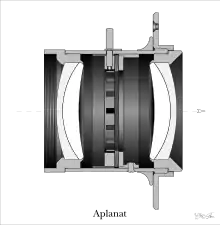 Апланат (від грец. а — заперечна частка і plane — блукання, відхилення, помилка) — об'єктив, у якому виправлено сферичну і хроматичну аберації, кому і дисторсію, а астигматизм виправлено для порівняно невеликого кутового поля[1]. Апланат складається з двох ахроматичних лінз, між якими розташовано діафрагму.