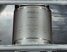 ![]() Фото меморіальної таблички прикріпленої до місячного модуля «Інтрепід» |