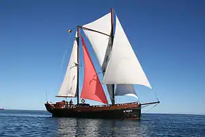 Галсовий кут апселя кріпиться на палубі судна з навітряного боку від грота-гіка, а шкот проводять через нок бізань-гіка, тому він одночасно стає аеродинамічно вигідною розпіркою для останнього.