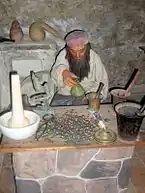 | Експозиція першого поверху | Фігура алхіміка в лабораторії | Кімната знахарки |