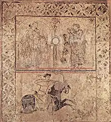 Арабська релігійна музика[34] включає єврейську (Пізмонім і Бакашот), християнську та ісламську музику. Однак ісламська музика, включаючи таджвіди або декламація читання в Корані, структурно рівнозначна арабській світській музиці, тоді як християнська арабська музика зазнала впливу сирійської православної, католицької, греко-православної, англіканської, коптської та маронітської церковної музики.[35]