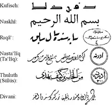Один з найдавніших стилів арабського письма — це куфі, або куфічний (араб. كوفي, від назви міста Куфа).
