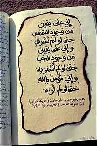 Каліграфія (від грецького «красиве письмо») давно грає важливу культурну роль у країнах арабського світу. Вона використовується не тільки на важливих документах, але також для цілей образотворчого мистецтва.