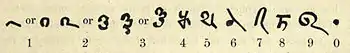 - Kunitzsch, The Transmission of Hindu-Arabic Numerals Reconsidered, 2003, p. 7: "Les personnes qui se sont occupées de la science du calcul n'ont pas été d'accord sur une partie des formes de ces neuf signes; mais la plupart d'entre elles sont convenues de les former comme il suit."