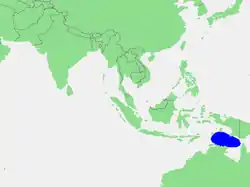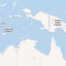 - На сході. Південно-західний берег Нової Гвінеї від мису Кароефа (133°27'E) до гирла річки Бенсбак (141°01'E), потім вниз до крайньої північно-східної точки півострова Кейп-Йорк, Австралія (11°05′ пд. ш. 142°03′ сх. д.).