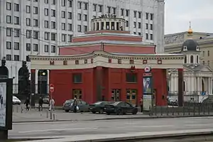 Наземний вестибюль має у плані форму п'ятикутної зірки. Вестибюль став одним з перших символів Московського метрополітену. Також він є одним із небагатьох вестибюлів, на яких зберігся напис «МЕТРО». На даху вестибюля спочатку хотіли встановити скульптуру «Метробудівець і червоноармієць», але від цієї ідеї відмовилися і встановили там шпиль із зіркою і червоні прапори.