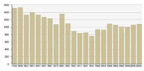 Динаміка населення (base Cassini de l'EHESS pour les nombres retenus jusque 1962[3], base Insee à partir de 1968 (population sans doubles comptes puis population municipale à partir de 2006)[4] · [5] ):