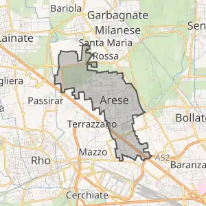 Арезе розташоване на відстані[1] близько 490 км на північний захід від Рима, 14 км на північний захід від Мілана.