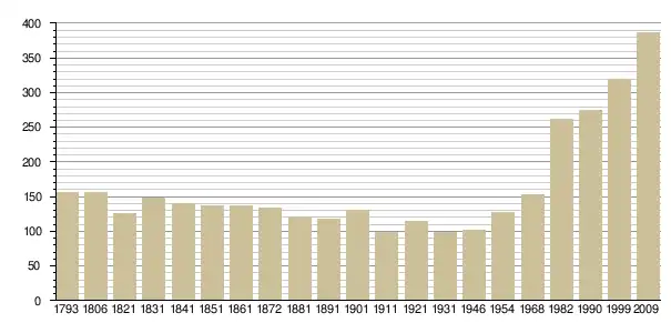Динаміка населення (Cassini[3] і INSEE[4] " ):