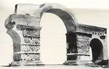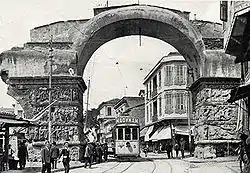 Тріумфальна арка побудована в 298—299 роках в честь перемоги в 298 році Галерія (тодішнього тетрарха) над Сасанідським царством і захопленням його столиці Ктесифона та була відкрита у 303 році. Арка не була самостійною спорудою, а з'єднувалася з галереями, що ведуть до мавзолею і палацу[3]