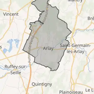 - Source : Des villages de Cassini aux communes d'aujourd'hui (3 janvier 2008). Notice communale Arlay. École des Hautes Études en Sciences Sociales (EHESS)., наведено за французькою вікіпедією