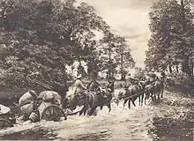 ![]() Німецькі війська долають водну перешкоду на конях. 1915 | |