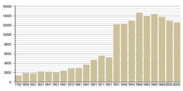 Динаміка населення (base Cassini de l'EHESS pour les nombres retenus jusque 1962[3], base Insee à partir de 1968 (population sans doubles comptes puis population municipale à partir de 2006)[4] · [5] ):