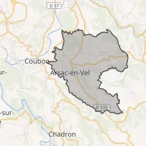 - Розташування муніципалітету Арсак-ан-Веле на мапі Франції та сусідні муніципалітети