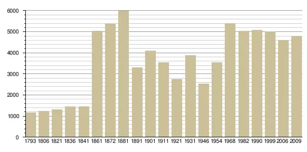 Динаміка населення (Cassini-Ldh-EHESS[4] і INSEE 2009[5]. ):
