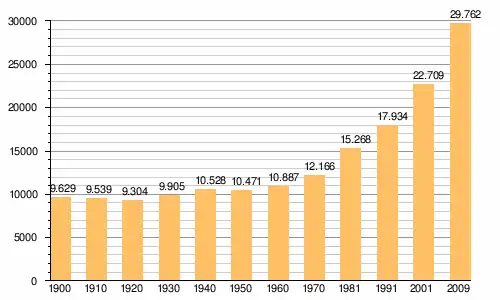 - Poblaciones de hecho desde 1900 hasta 1991. Cifras oficiales de los Censos respectivos. (іспанською). Національний інститут статистики Іспанії (INE). Процитовано 24 жовтня 2010.