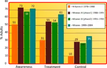 - Ostchega Y, Dillon CF, Hughes JP, Carroll M, Yoon S (July 2007). Trends in hypertension prevalence, awareness, treatment, and control in older U.S. adults: data from the National Health and Nutrition Examination Survey 1988 to 2004. Journal of the American Geriatrics Society 55 (7): 1056–65. PMID 17608879. doi:10.1111/j.1532-5415.2007.01215.x.