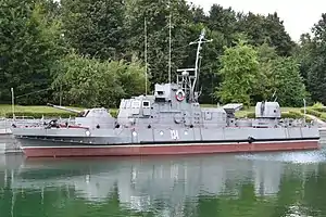 - VB 76 class small river patrol monitors — річкові патрульні малі монітори «VB 76-class» («vedeta blindante mici»), побудовані в кількості 18 одиниць на верфі в м. Тулча від 1974 до 1977 року.[26] Являють значно перероблений проєкт радянських бронекатерів проєкту 1125, поставлених до Румунії в 1952 році. Поступали до складу Дунайської флотилії ВМС Румунії.[27][28]