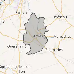 - Розташування муніципалітету Артр на мапі Франції та сусідні муніципалітети