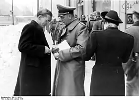 ![]() Генерал-майор Мюльферштедт збирає пожертви в День німецької поліції (29 січня 1939). | ||||||||||||