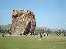 - Природна пам'ятка — розташоване посеред поля окреме скельне утворення Тайхар-Чулуу з якою пов'язано багато легенд.
