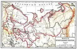 На території Архангельської губернії знаходиться сучасна територія Мурманської області, Ненецького автономного округу, північних частин Карелії, Архангельської області, Республіки Комі.