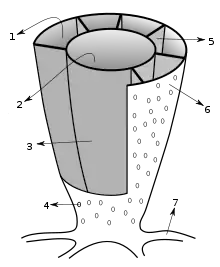 До поверхні археоціати кріпилися за допомогою розгалуженої основи. В одних видів вона мала висоту 2-5 мм, у інших охоплювала келих на висоту до 13-15 мм[1][2].