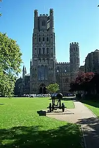 Готика Англії виникла досить рано (наприкінці ХІІ ст.) й існувала до XVI ст. Млявий розвиток міст призвів до того, що готичний собор став не міським храмом, а монастирським, оточеним полями і луками. Звідси, очевидно, його «розпластаність» по горизонталі, розтягнутість у ширину, наявність декількох прибудов. Домінанта собору — величезна вежа на середхресті, ярусна, прямокутна з пласким дахом.