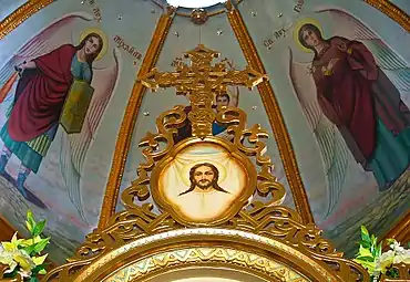 Зважаючи на дуже маленьку площу, яка збереглася від колись великого храму, а також те, що більша частина теперішньої церкви — це прибудова п'ятдесятих років, приміщення не дає змоги побачити первинну структуру інтер'єру церкви. Іконостас церкви, зроблений з дубового дерева з різьбою і позолотою, походить із XIX століття. Містить 16 ікон. Простір між іконами розділений шістьма різьбленими позолоченими колонками складної форми. Другий ярус іконостасу займають дві бічні системи ікон, над якими встановлені скульптурні зображення ангелів із хрестами над ними, напис «Христос Воскрес» та середня ікона, вище якої розміщене зображення Ісуса Христа. З 1963 року до 1990 іконостас перебував на збереженні у Свято-Троїцькому кафедральному соборі. Храм має також і окремі старі цінні ікони. Інтер'єр був наново розписаний у 2000-х роках.