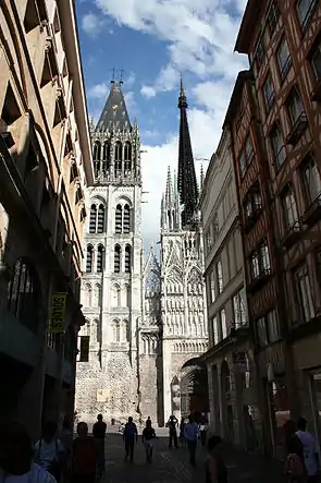 В XI столітті архієпископ Маурилій боровся з ученням Бернарда Турського, що поширилось в Руані. 1160 року в Руані почалось будівництво кафедрального собору, який у подальшому пережив численні пожежі. У 1330–1338 роках архієпископом Руана був П'єр Рожер — майбутній папа Климент VI. 1371 року Святий Престол звільнив настоятеля Руанського собору від світської й духовної влади руанського архієпископа.