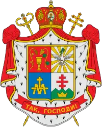 Герб архієпископа-митрополита Володимира (Війтишина) містить Архієпископський хрест за мантією