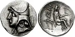 (номінал — діхалк, чотири серії) — сагайдак, легенда грец. ΑΡΣΑΚΟΥ; сагайдак, монограма М та легенда грец. ΑΡΣΑΚΟΥ; сидячий на голові бика праворуч орел, далі праворуч голова коня, ліворуч легенда грец. ΑΡΣΑΚΟΥ; сидячий на голові бика праворуч орел, ліворуч легенда грец. ΑΡΣΑΚΟΥ.