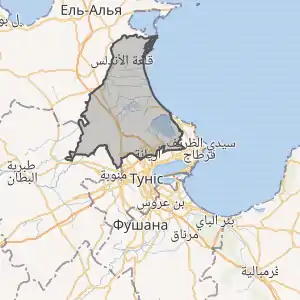 Розташований у північній частині країни. На північному заході межує з вілаєтом Бізерта, на південному заході — з вілаєтом Мануба, на півдні — з вілаєтом Туніс. На сході омивається водами Середземного моря (Туніська затока).