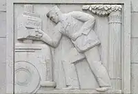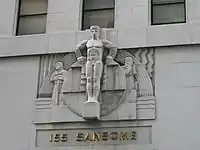 Ralph Stackpole's sculpture group over the door of the San Francisco Stock Exchange; (Timothy L. Pflueger, 1930)