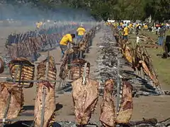 М'ясо нарізають в останню чергу. Для цього готується велика дошка, виделка і ніж з довгою колодкою. З м'яса знімається зайвий жир. Асадо звичайно готується з яловичих ребер, але також це може бути курча, ромштекс, стейк з кісткою, гарна філейна частина. Усе нарізається шматками й обсмажується. Ковбаси на кілька хвилин кладуть у холодну воду, потім проколюють виделкою, щоб вийшов жир, тоді вони не лопаються.