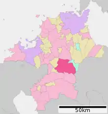- Хіґашіде М. Історія міст префектури Фукуока. Адміністративний поділ Японії. (японською). Архів оригіналу за 12 липня 2013. Процитовано 20 вересня 2012.