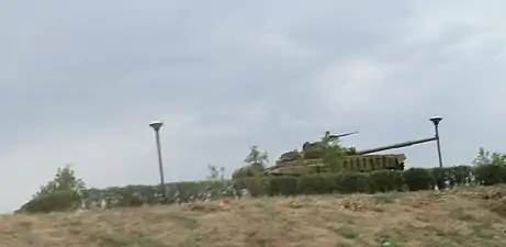 Танк-пам'ятник при в'їзді в місто.