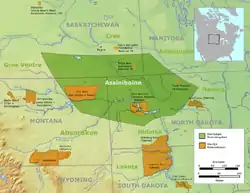 ![]() Історична область розселення ассінібойнів в XIX столітті | |