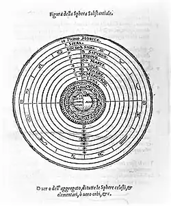 Аристотель вважав, що небесні тіла переносяться в своєму русі твердими небесними сферами, до яких вони прикріплені[39]. У трактаті Про Небо він стверджував, що небесні тіла здійснюють рівномірні кругові рухи просто тому, що така природа наповнюючого їх ефіру[40]. У трактаті Метафізика він висловлює іншу думку: все, що рухається, приводиться в рух чимось зовнішнім, яке, в свою чергу, також чимось рухається, і так далі, поки ми не дійдемо до двигуна, який сам по собі нерухомий. Таким чином, якщо небесні світила рухаються за допомогою сфер, до яких вони прикріплені, то ці сфери приводяться в рух двигунами, які самі по собі нерухомі. За кожне небесне тіло відповідає кілька «нерухомих двигунів», по числу сфер, які його несуть. Сфера нерухомих зірок, яка знаходиться на кордоні світу повинна мати тільки один двигун, оскільки вона здійснює лише один рух — добове обертання навколо осі. Оскільки ця сфера охоплює весь світ, відповідний двигун (Першодвигун) і є в кінцевому підсумку джерелом усіх рухів у Всесвіті. Усі нерухомі двигуни поділяють ті ж якості, що й Першодвигун: вони є нематеріальними безтілесними утвореннями і являють собою чистий розум (латинські середньовічні вчені називали їх інтелігенції і зазвичай ототожнювали з ангелами)[41].